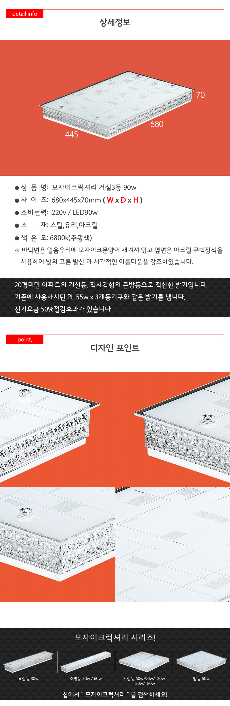 모자이크럭셔리 거실3등 LED 90W 절전형