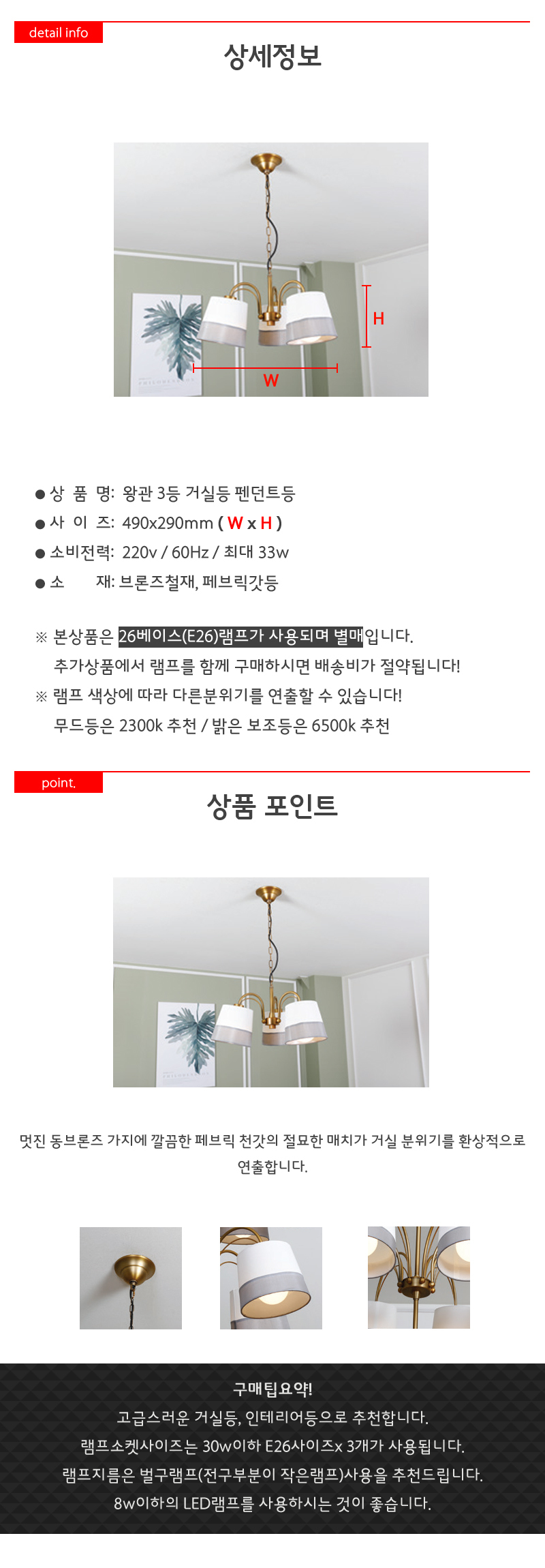 왕관 3등 식탁등 33W LED 11Wx3 클 이미지/