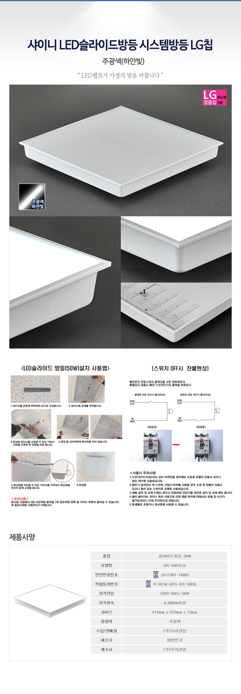 [두리산업] 샤이니 LED슬라이드방등 LED방등 시스템방등 LG칩 [50W]