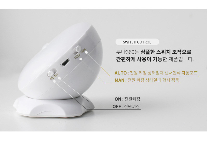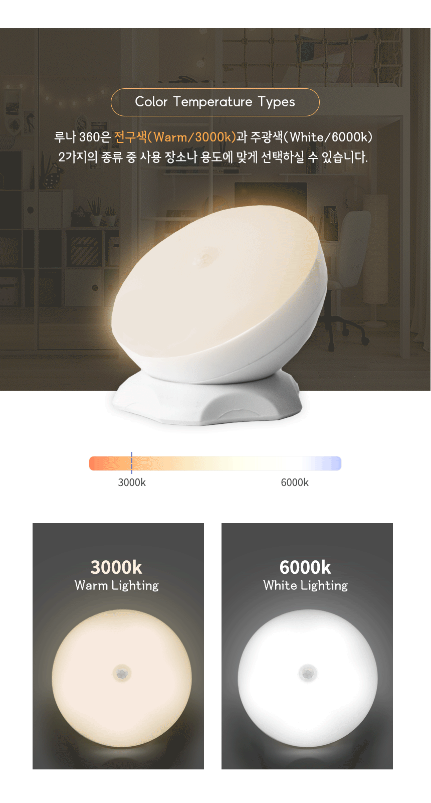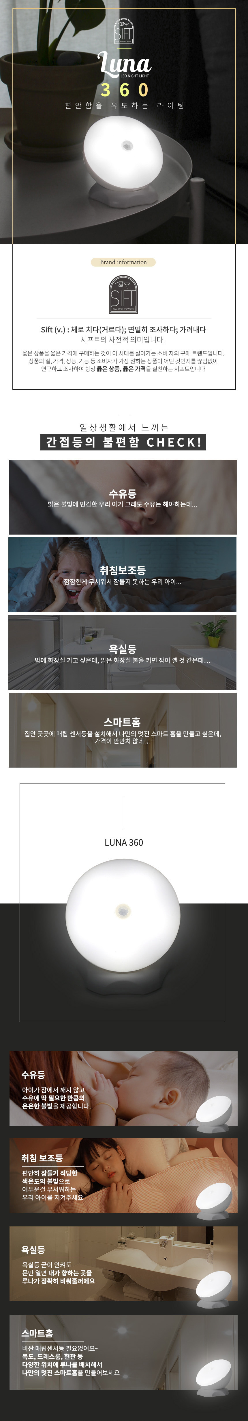 루나 360 무선 센서등 배터리/충전식 겸용 무드등 수유등 현관등 욕실등 취침등 수면등 스