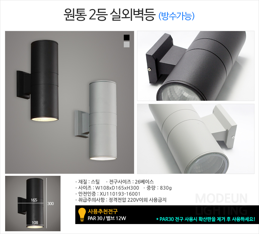 원통 2등 벽등/실외벽등/외부벽등/인테리어조명/복도등/벽꾸미기/벽조명 이미지/