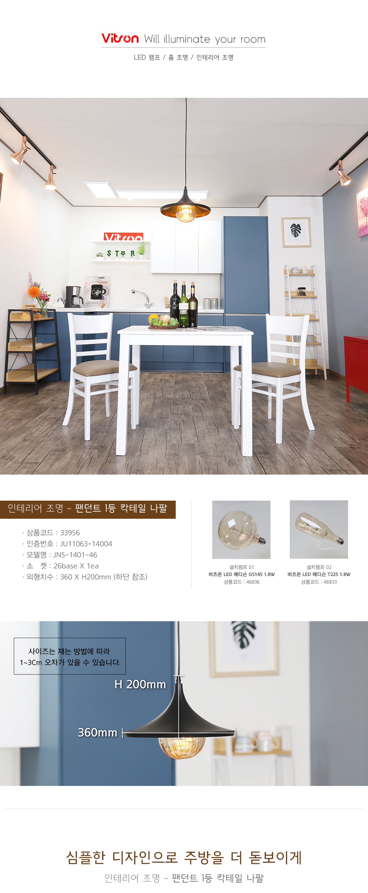 - 식탁등, 카페, 팬션, 인테리어 등으로 사용