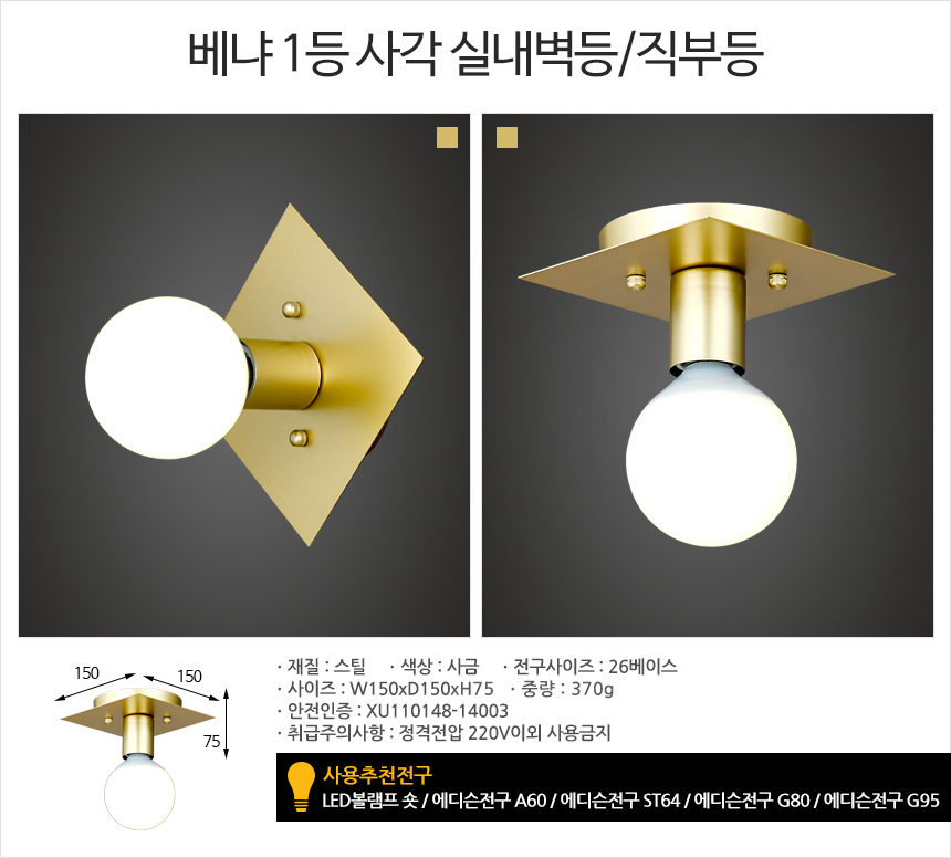 • 품명 및 모델명로티카 1등 벽등베냐 1등 사각 실내벽등직부등