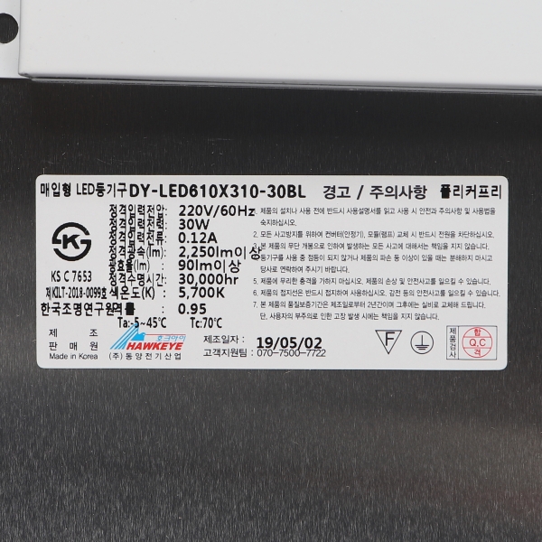 품명및 모델명 : LED평판 슬림베젤 엣지/610*310 30W ★주광★ KS