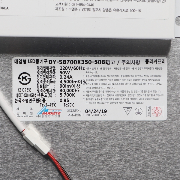 품명및 모델명 : LED평판 슬림베젤 엣지/700*350 50W ★주광★ KS
