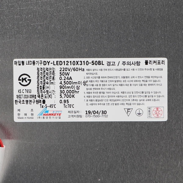 품명및 모델명 : LED평판 슬림베젤 엣지/1210*310 50W ★주광★ KS