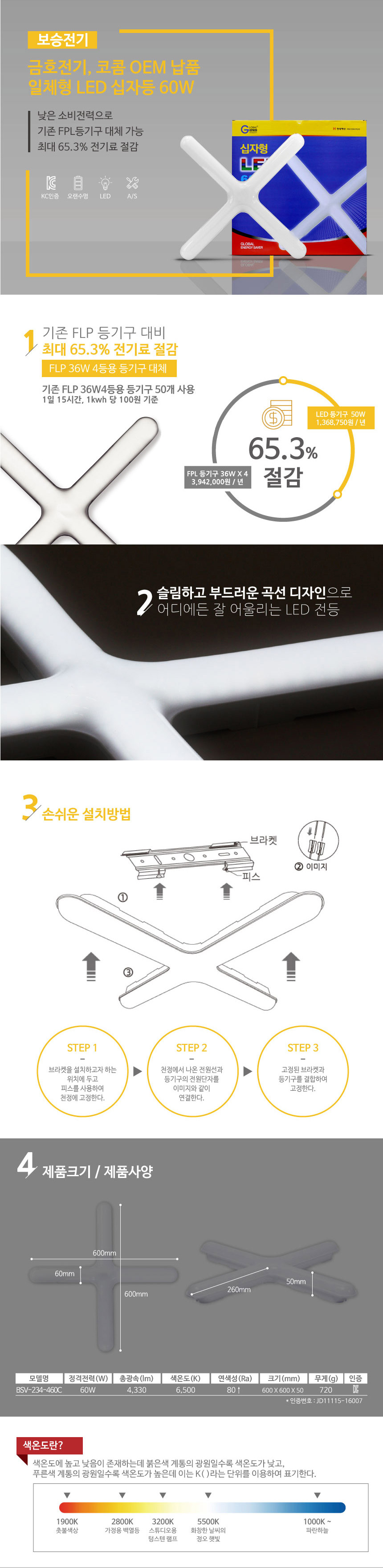 [태연씨앤엘] 보승전기 LED십자등 60W 매장 거실 방등 이미지/
