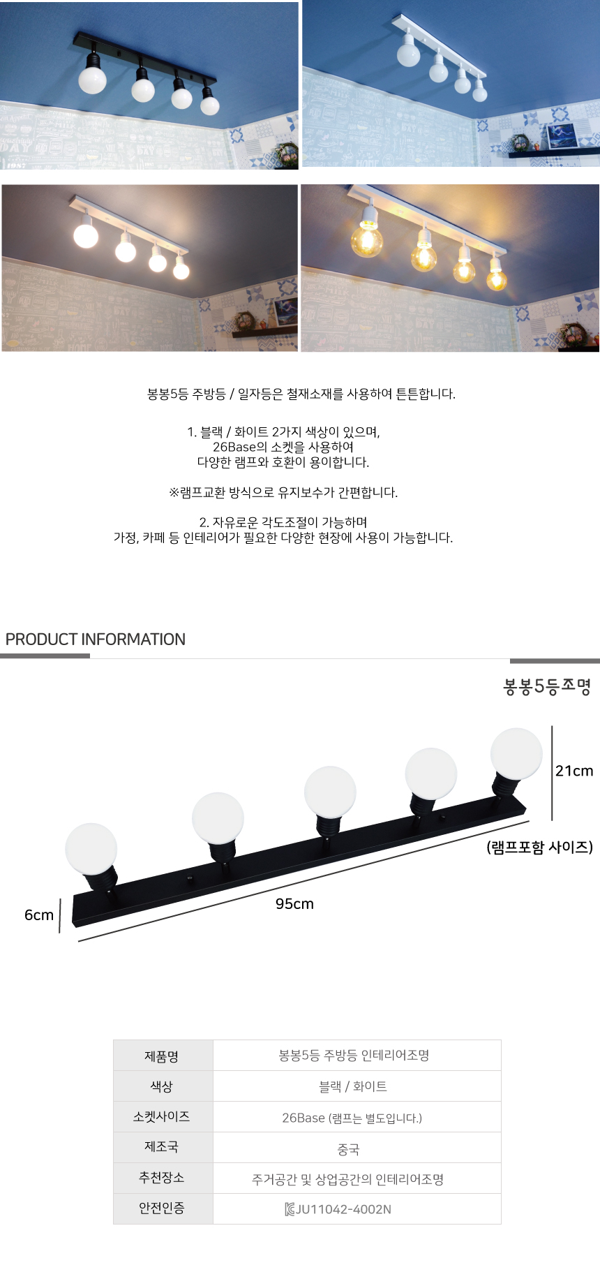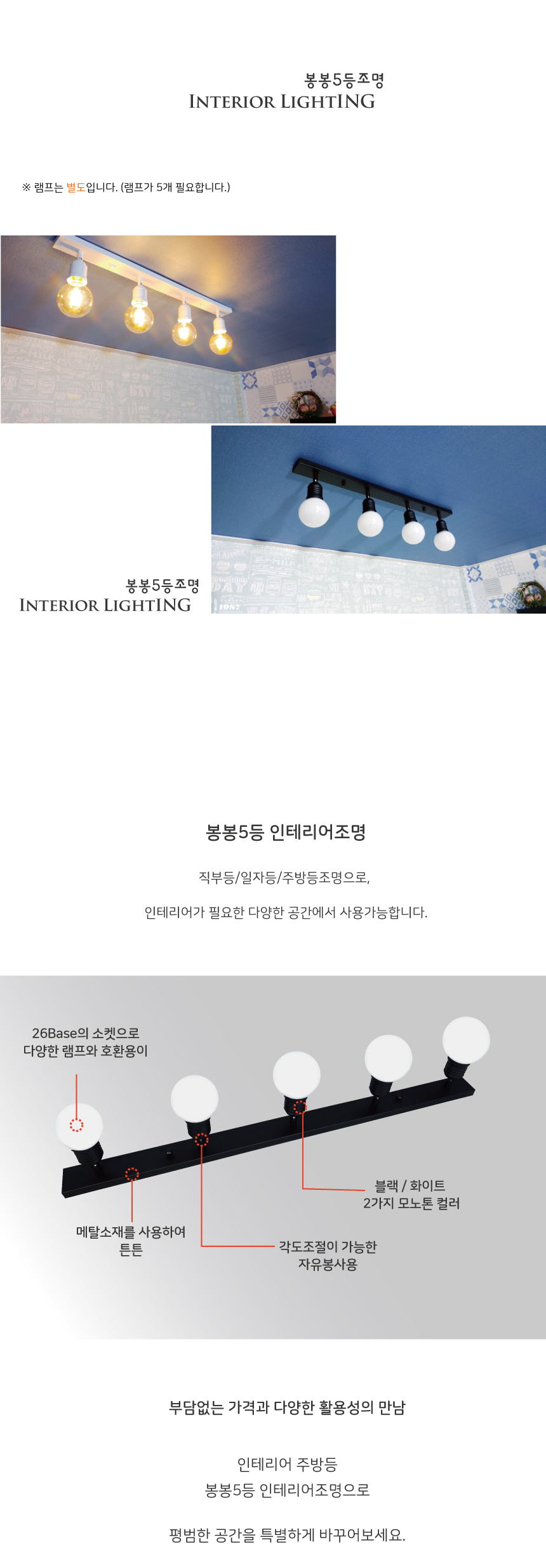 봉봉 5등 주방조명 블랙 인테리어조명 이미지/