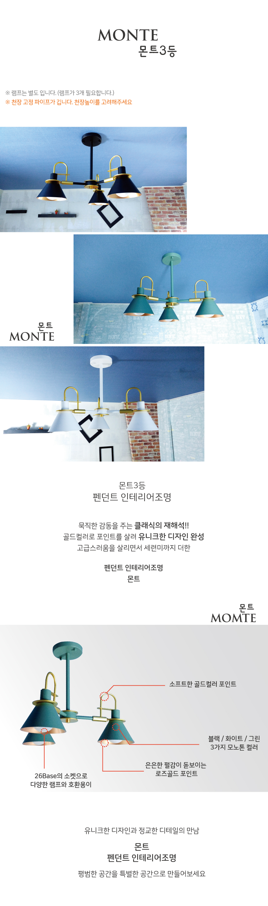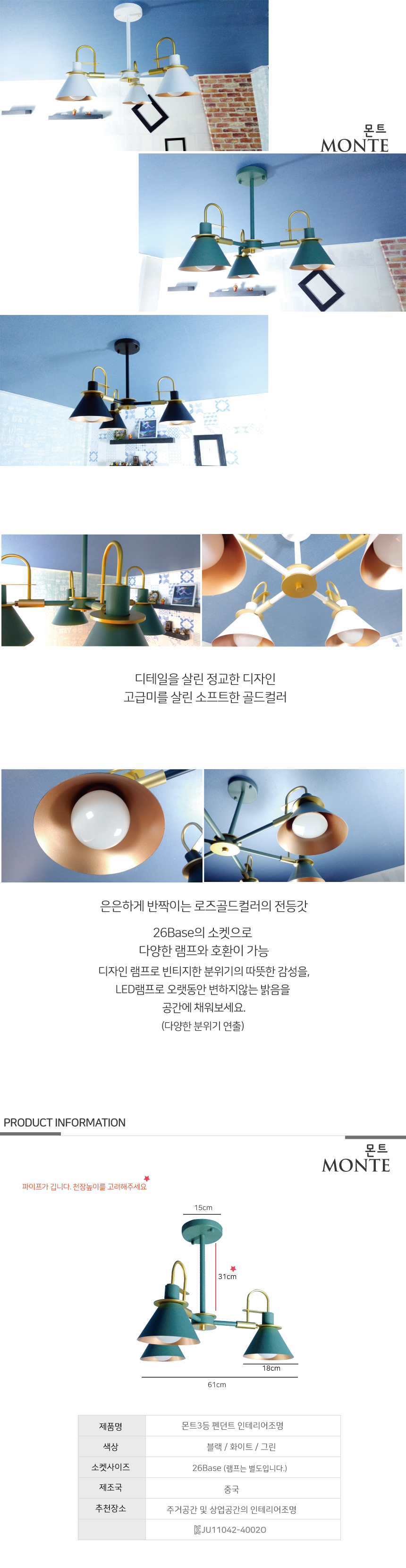 인테리어조명 몬트3등 그린(E26) 램프별도 이미지/
