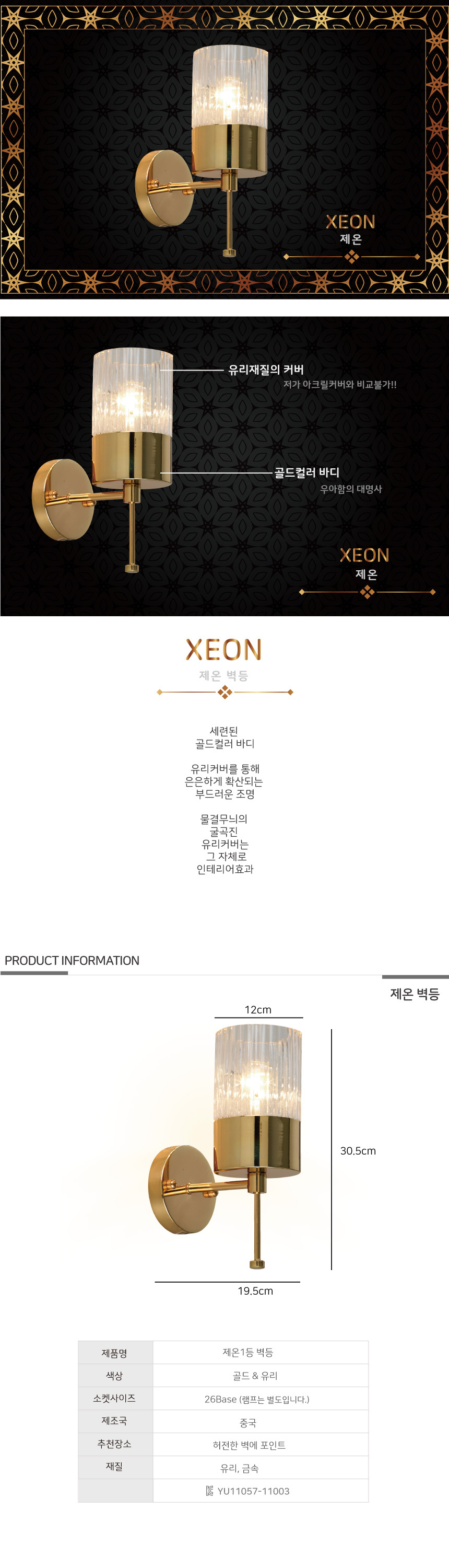 인테리어벽등 제온B/R 골드(E26) LED에디슨전구포함 이미지/
