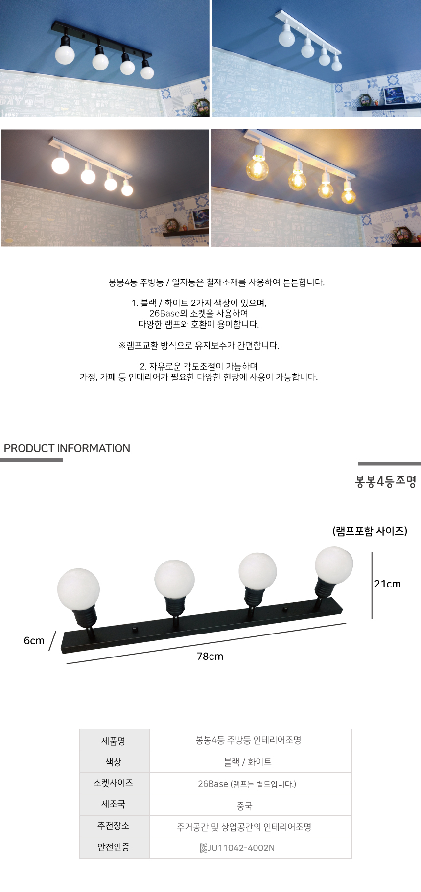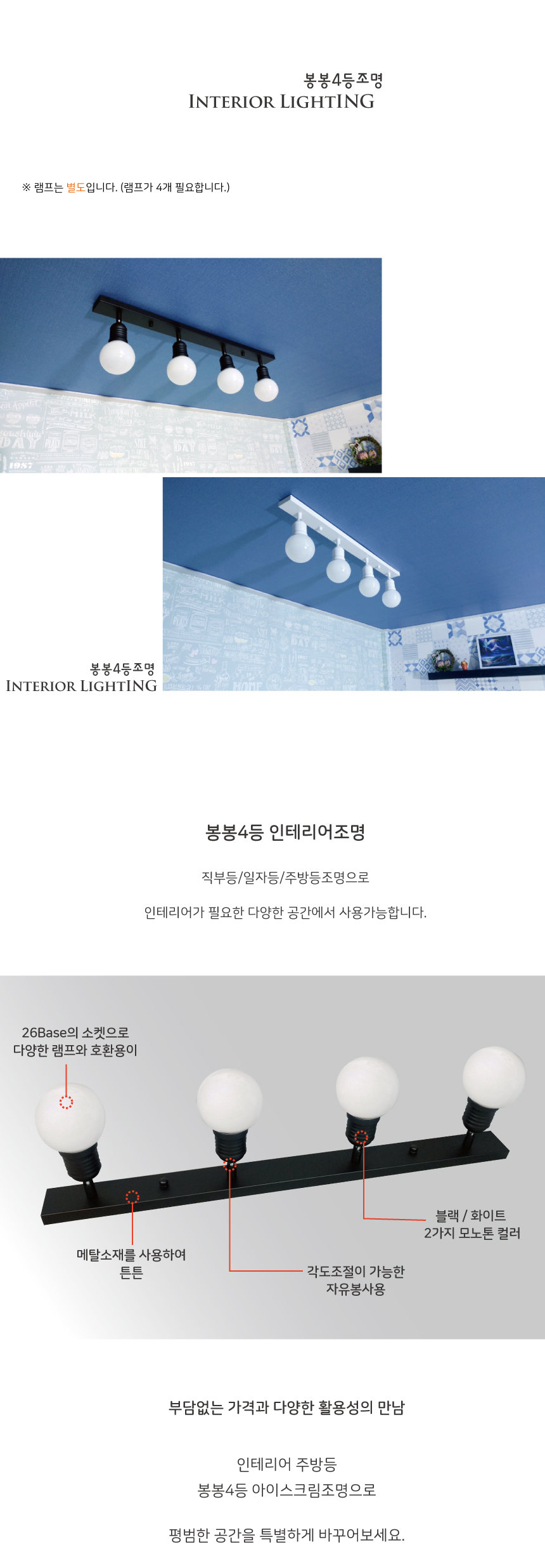봉봉 4등 주방조명 블랙 인테리어조명