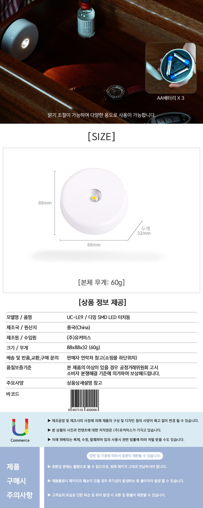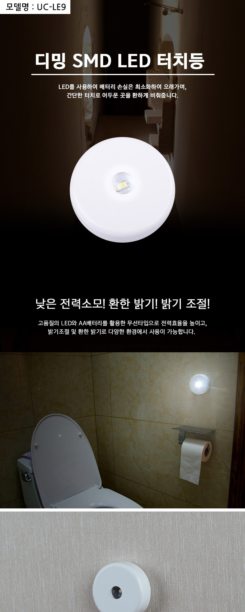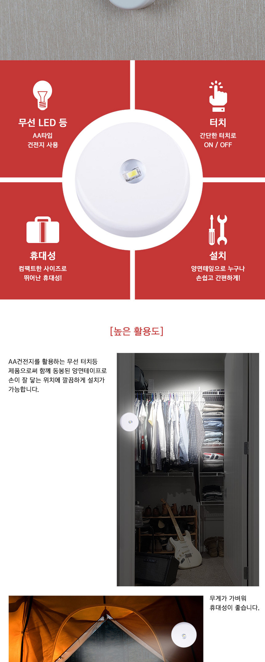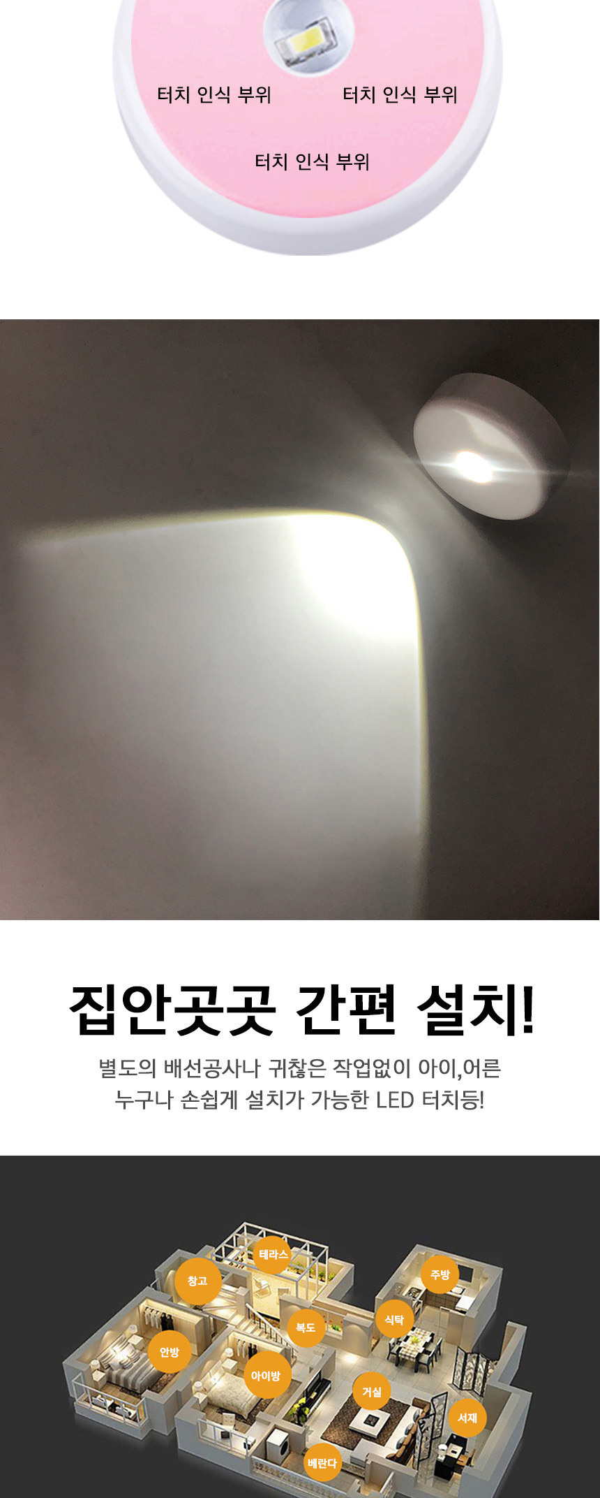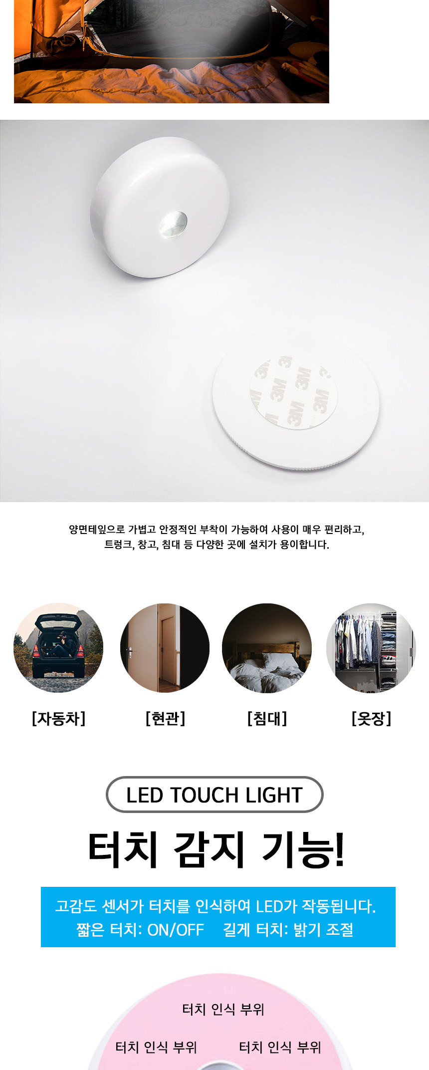 <상품명 : 무선 LED등 터치등 센서 라이트 밝기조절 수면 간접등>