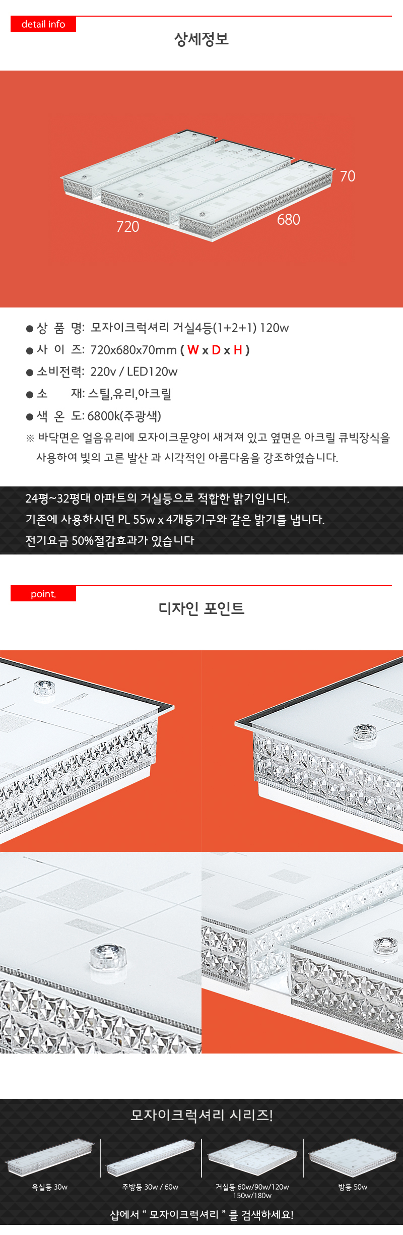 <상품명 : 모자이크럭셔리 거실4등 1+2+1 LED 12>