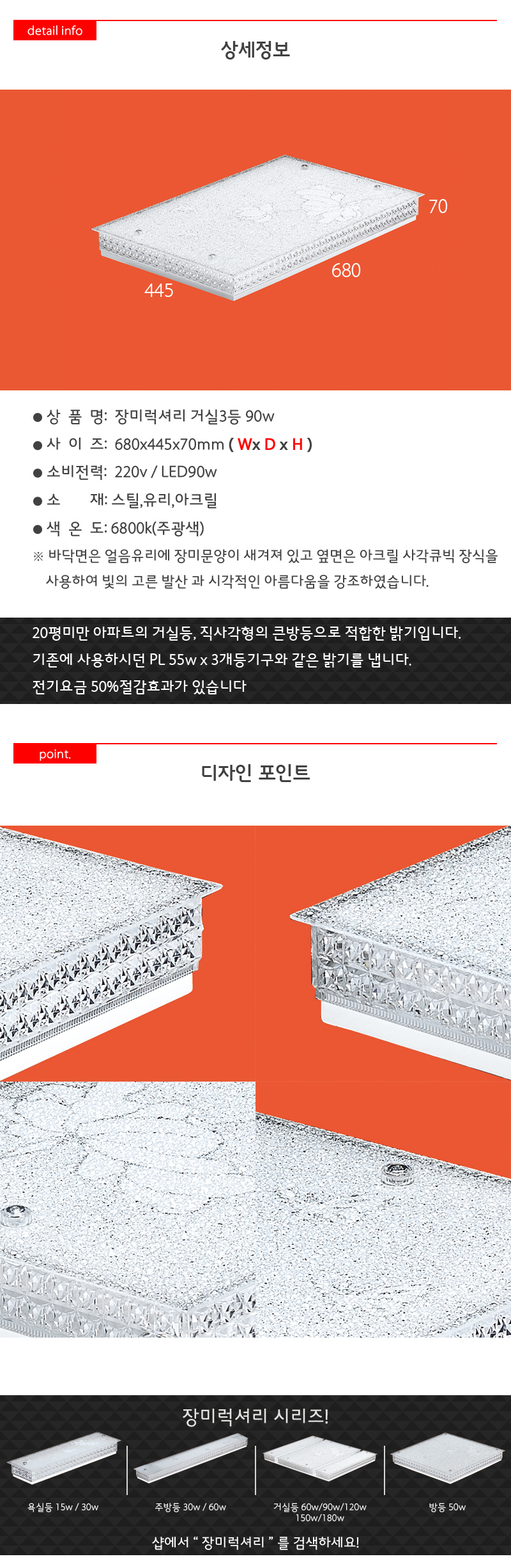 장미럭셔리 거실3등 LED 90W 절전형 거실