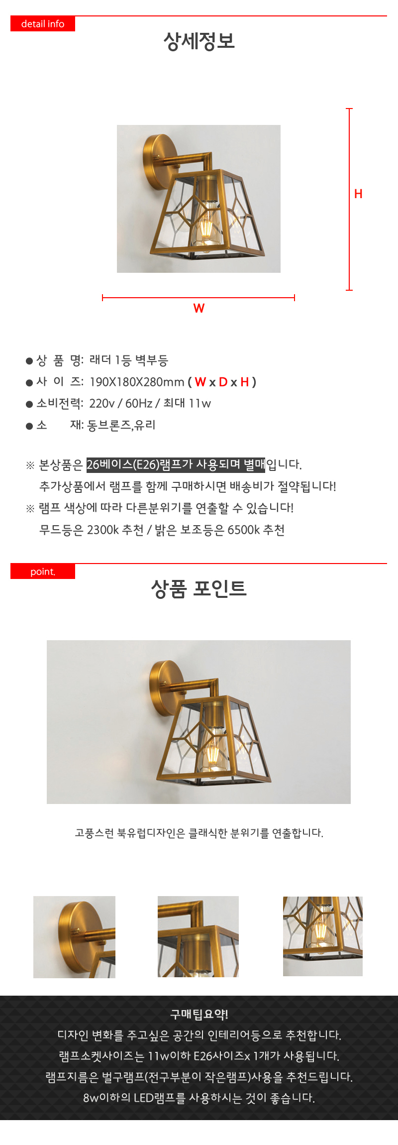 래더 1등 벽부등 11W LED 11wx1 북 이미지/