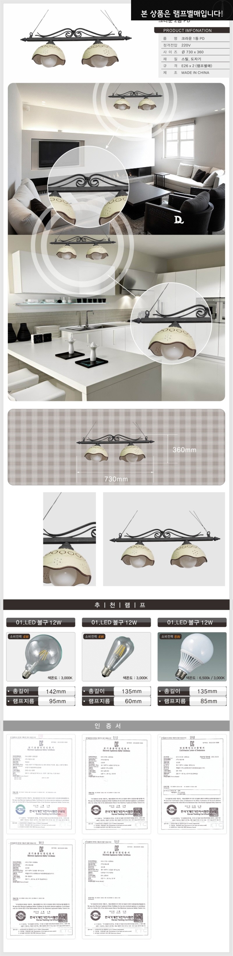 크라운 2등 앤틱식탁등 펜던트등 형광램프 투광 이미지/
