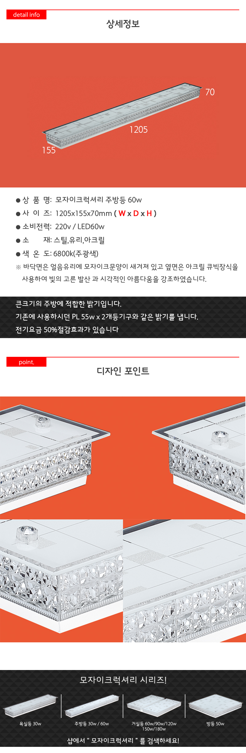 모자이크럭셔리 주방등 LED 60W 절전형 거