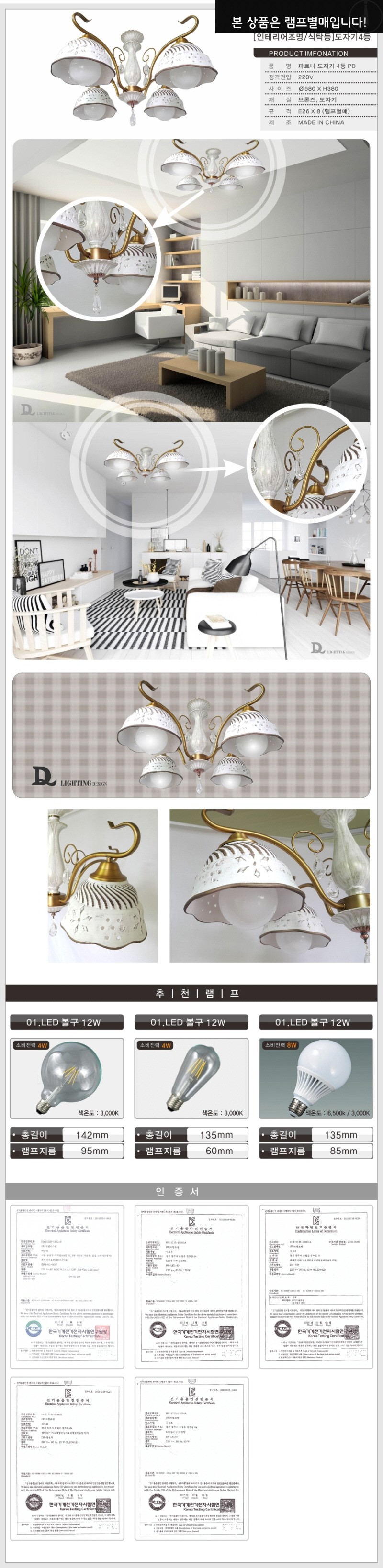 도자기 4등 프린스 도자기등 엔틱 천정등 형광