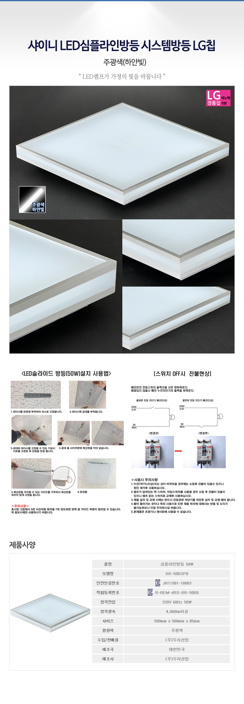 [두리산업] 샤이니 LED심플라인방등 LED방등 시스템방등 LG칩 [50W] 이미지/
