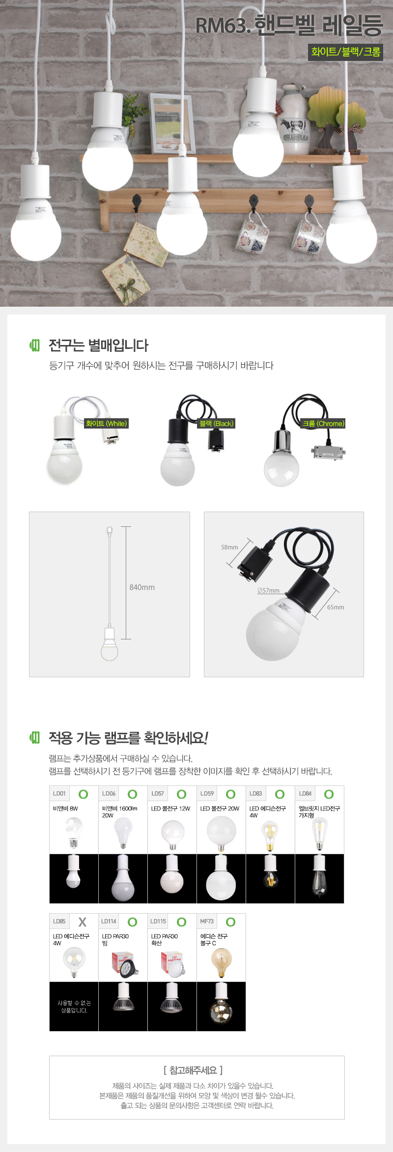 핸드벨 레일등기구 화이트 블랙 118247