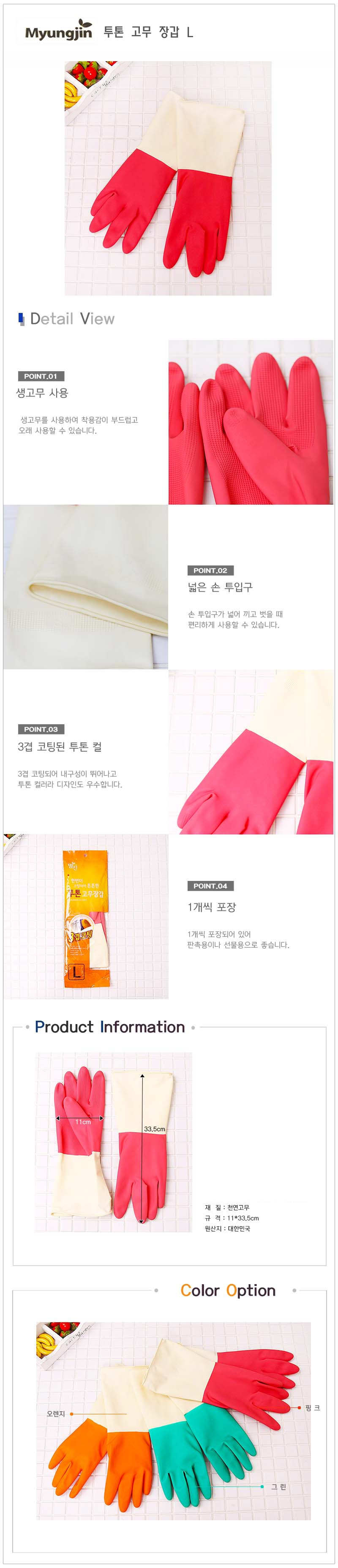 1. 품명 및 모델명 : 3겹 투톤 고무장갑 L 1개 튼튼한고무장갑 천연고무 / 상세정보별도표시