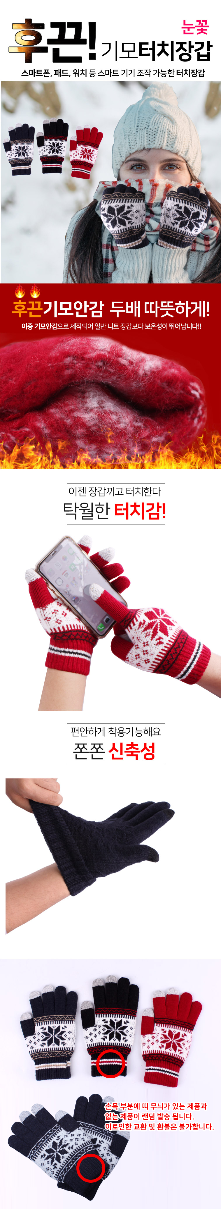 눈꽃 기모 터치장갑(색상랜덤) 이미지/