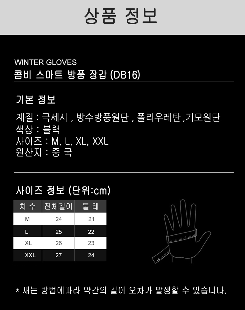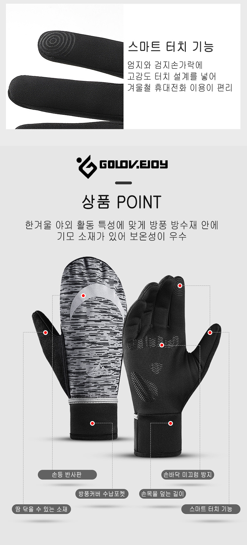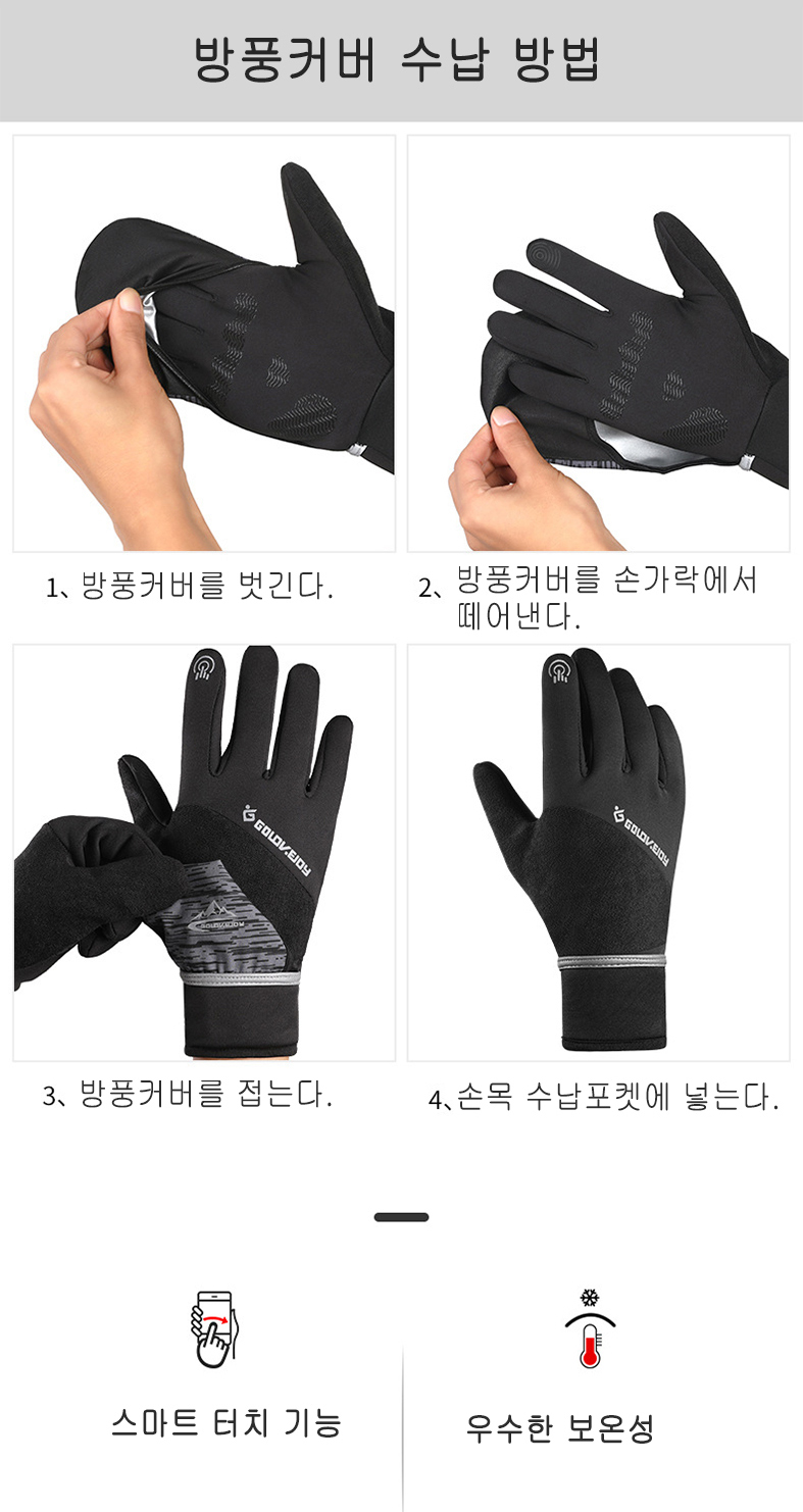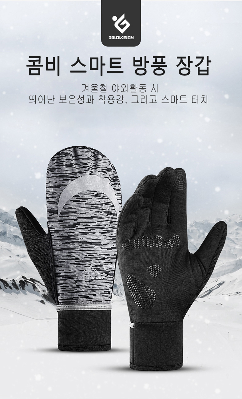 LW 콤비 스마트 방풍장갑 겨울 야외활동 스마트터치 미끄럼방지 방한커버 수납