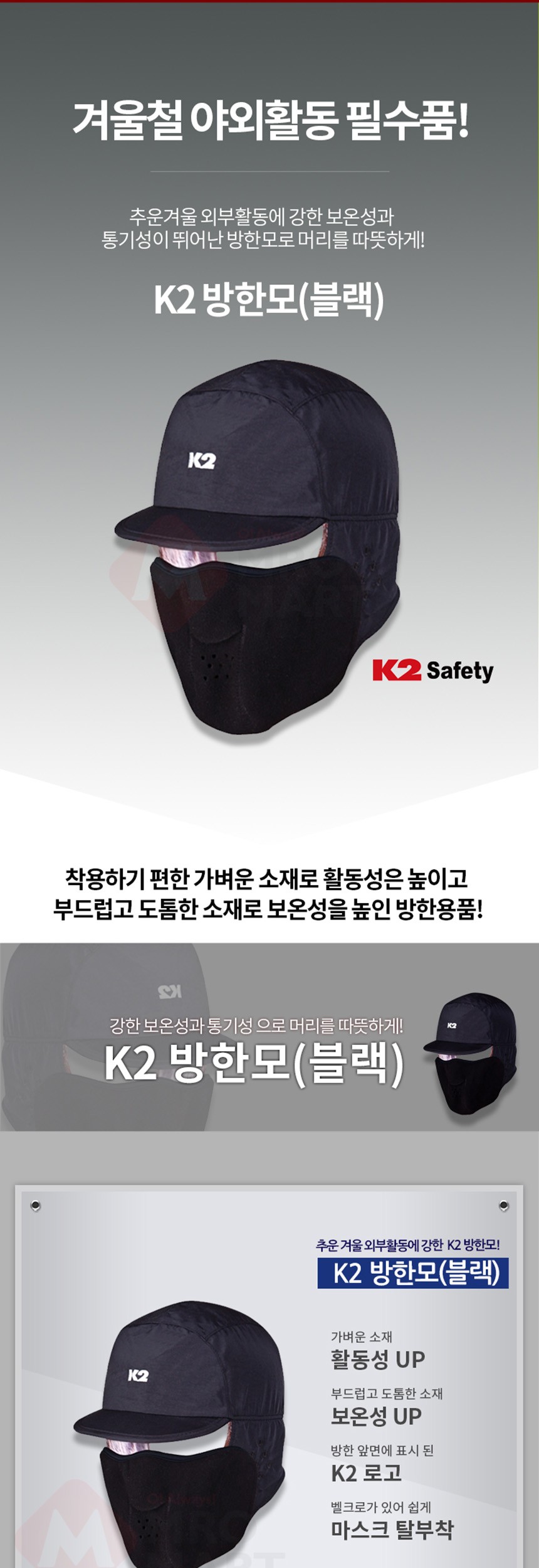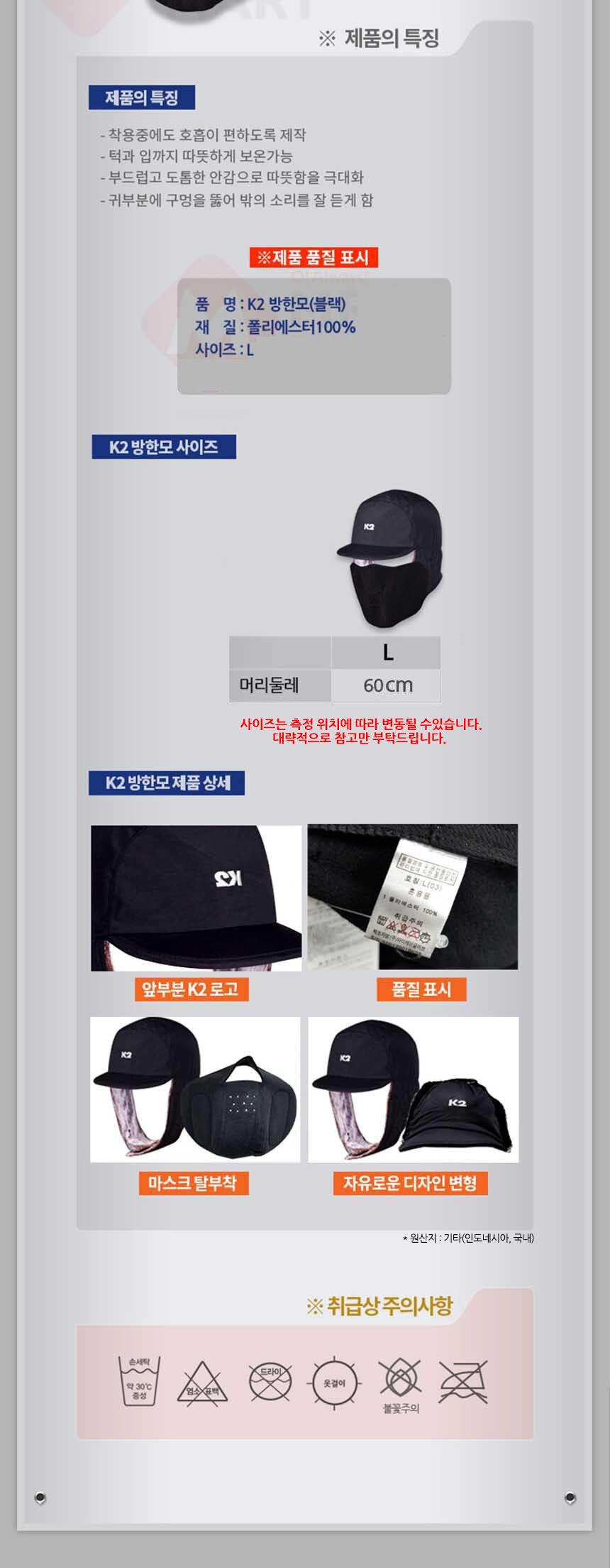 K2 방한모 블랙 귀달이모자 L 귀덮개모자 군밤모자 겨울모자 방한모자 스키 캠핑