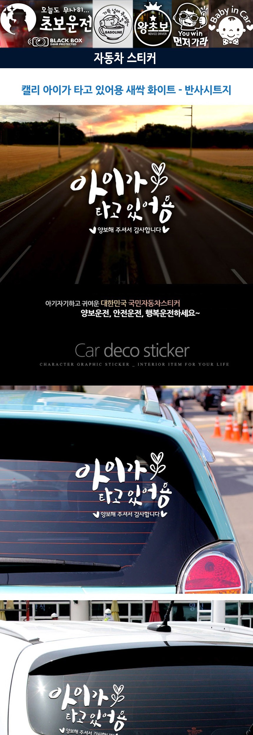자동차스티커 아이가타고 캘리화이트 반사시트지
