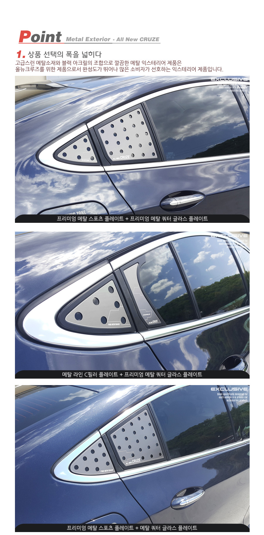 올뉴크루즈 메탈 라인 C필러 플레이트 몰딩 좌우1set 이미지/