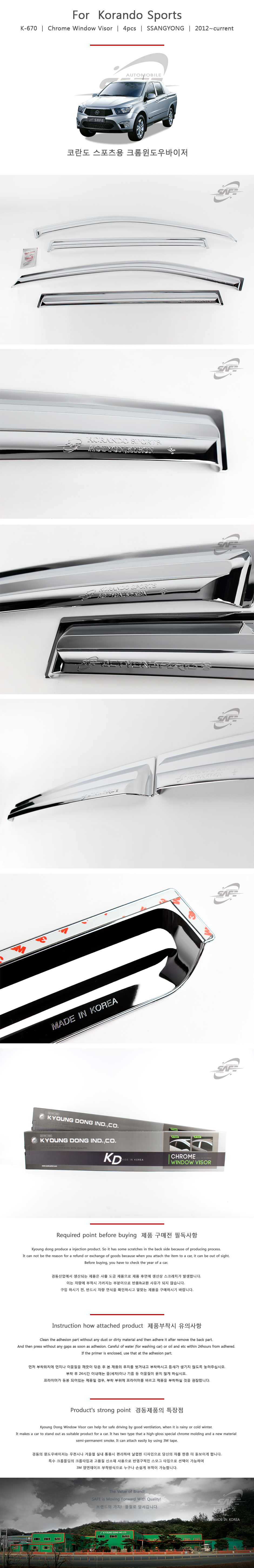 자동차썬바이저 코란도스포츠 크롬 몰딩 K-670 이미지/