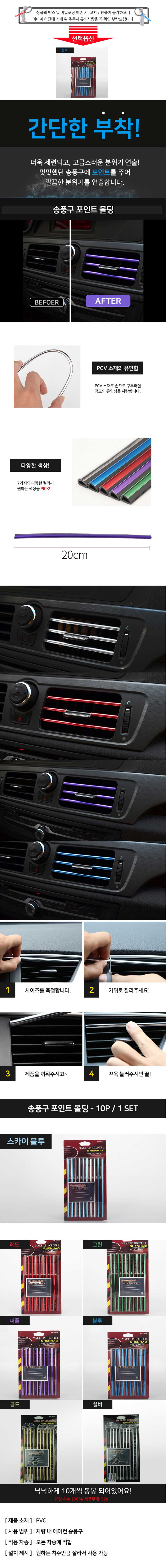 자동차 에어컨 송풍구 몰딩 20cm 10p 1세트 블루