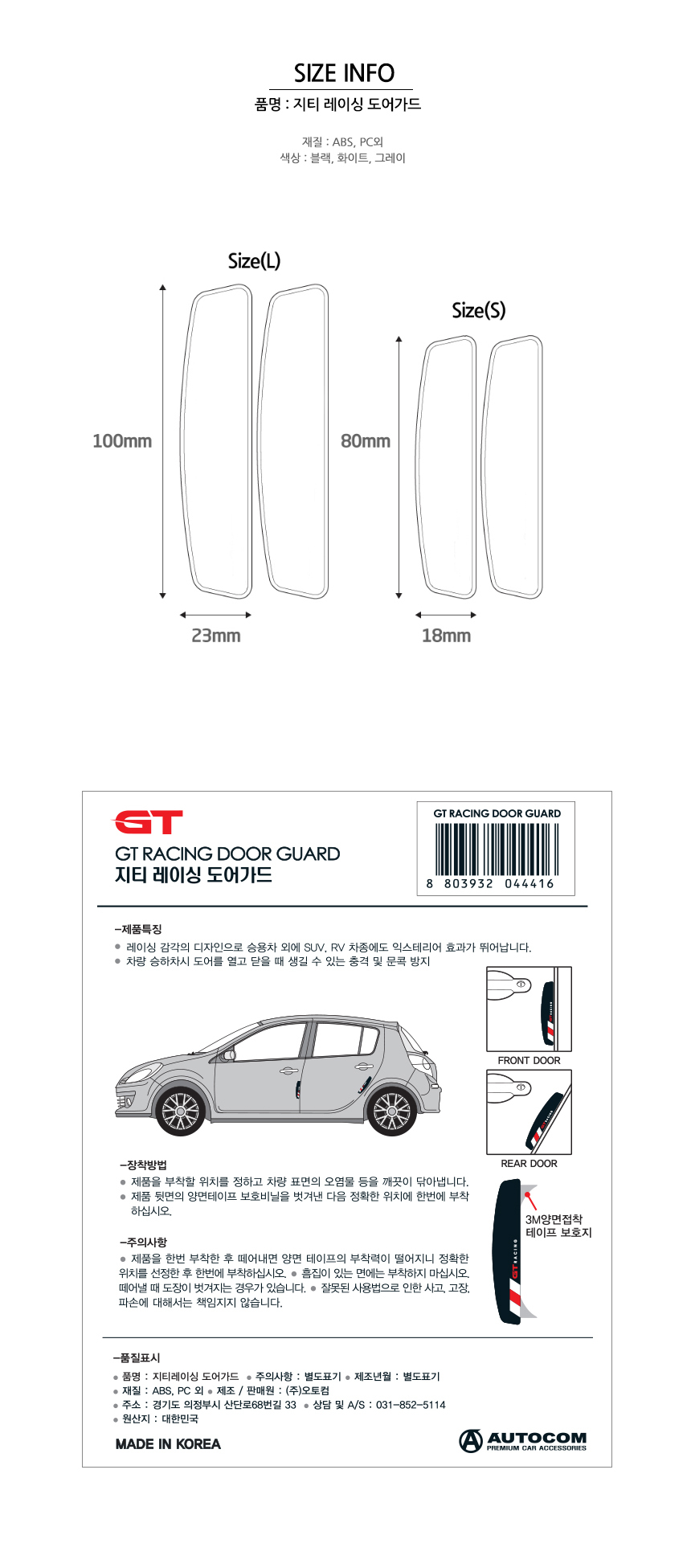 모델명 지티레이싱도어가드 화이트