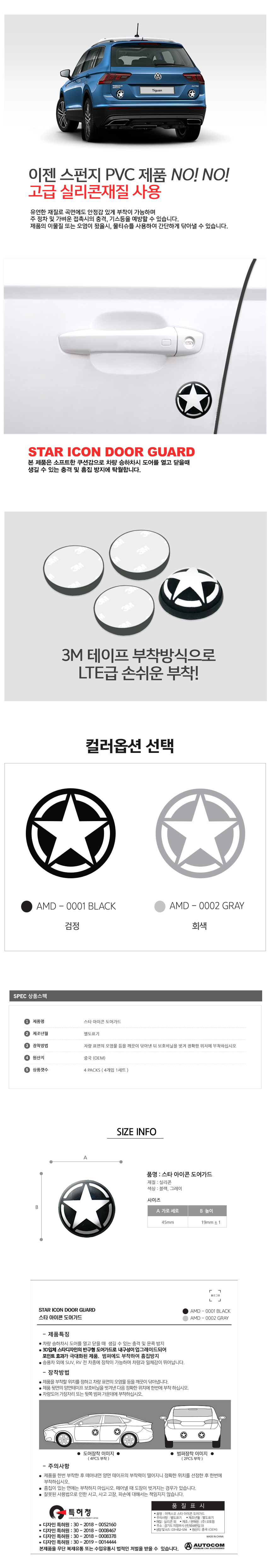 ETC 자동차 도어 가드 별 문콕 방지 패드 몰딩 문보호