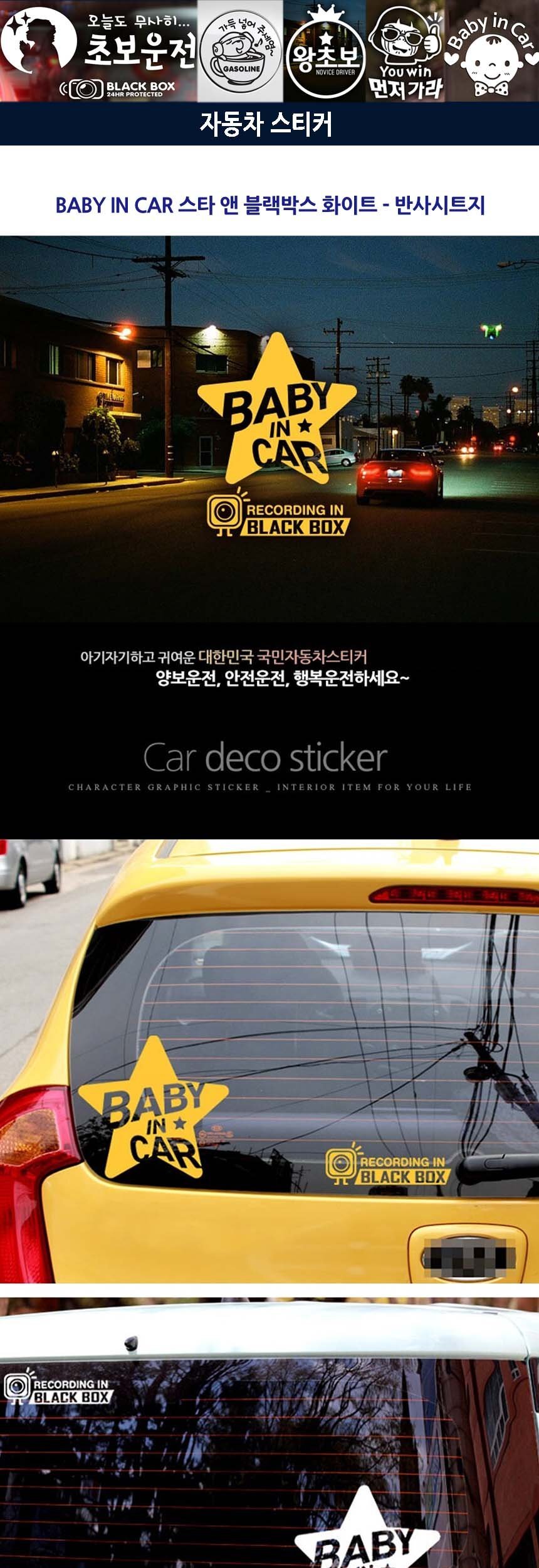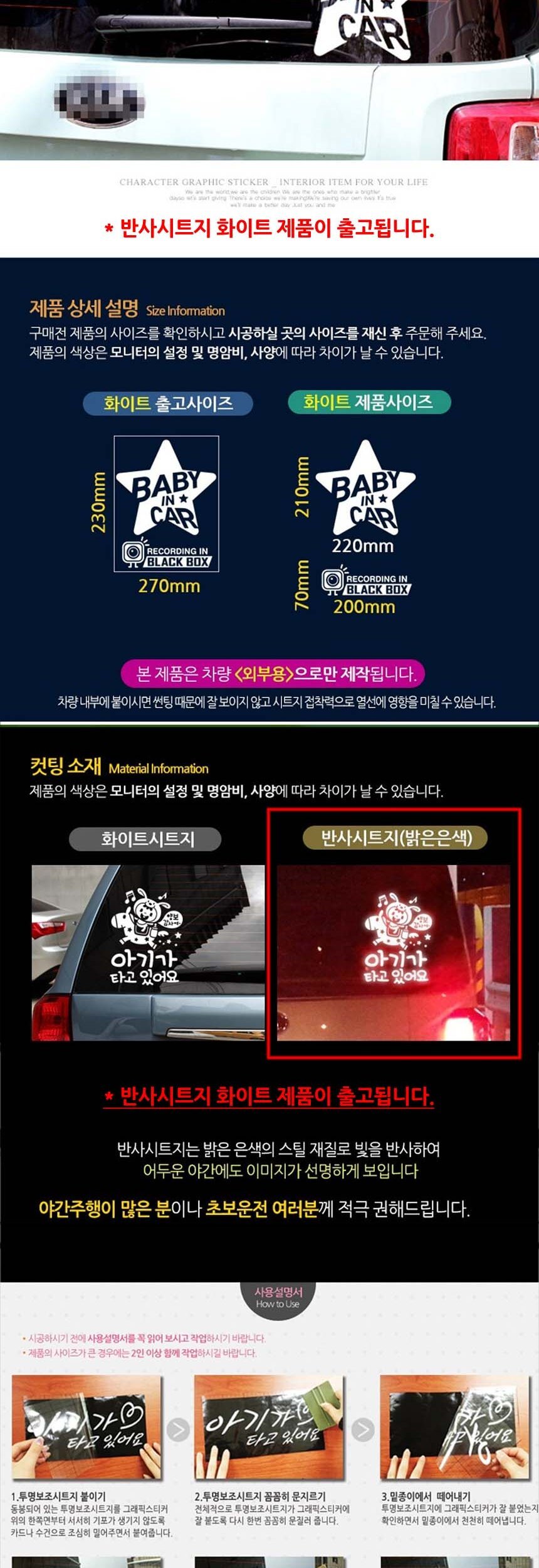 자동차스티커 baby in car 스타화이트 반사시트지 이미지/