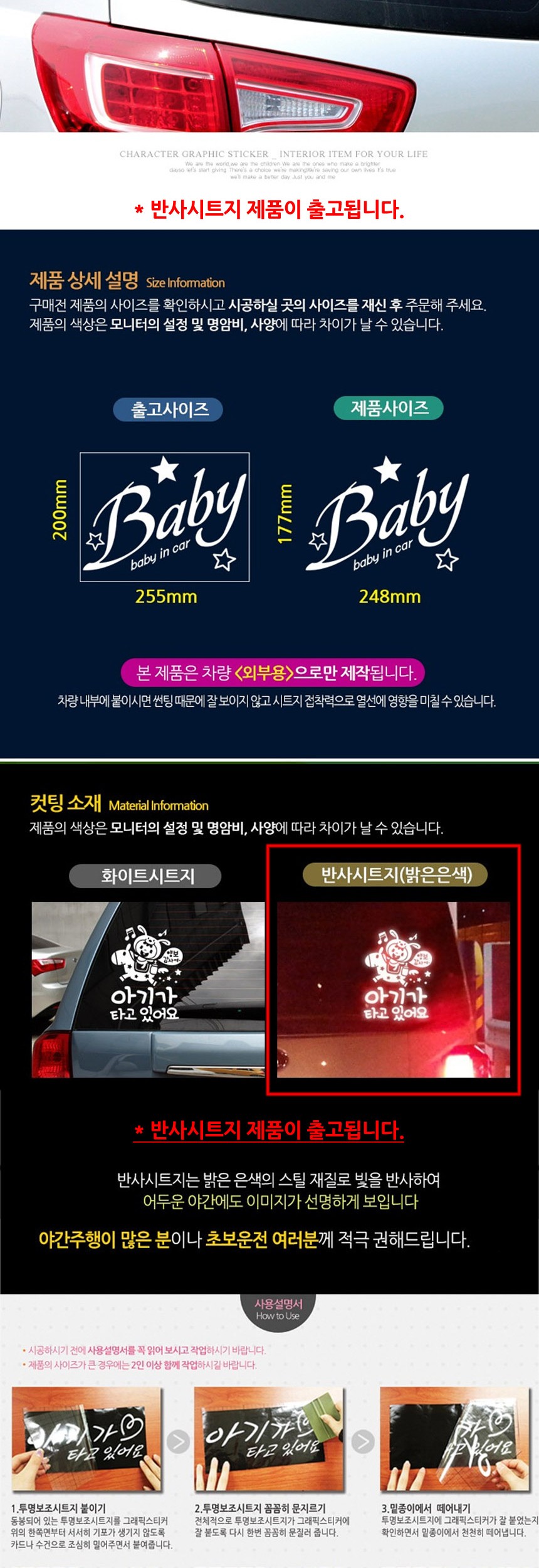 자동차스티커 BABYINCAR BABY스타화이트 반사시트지
