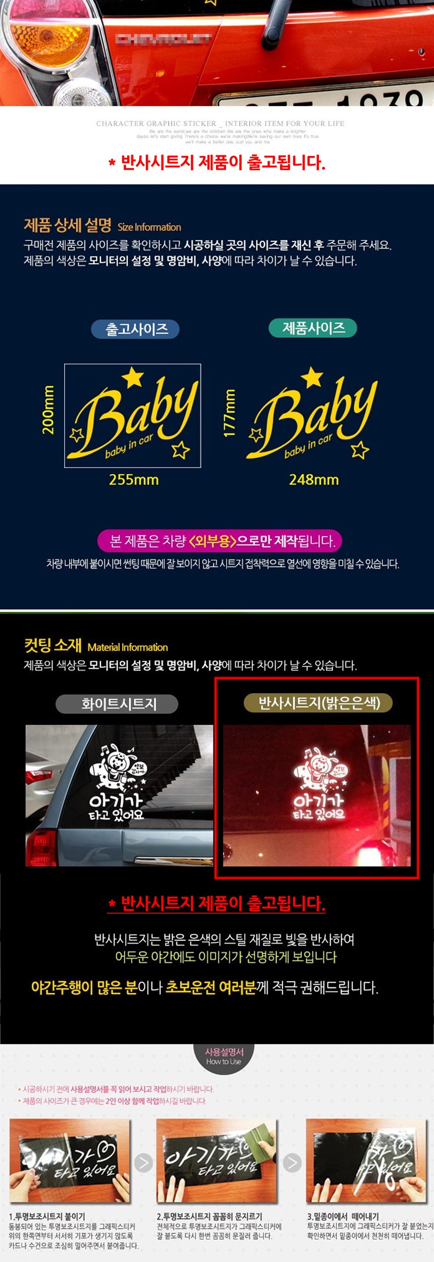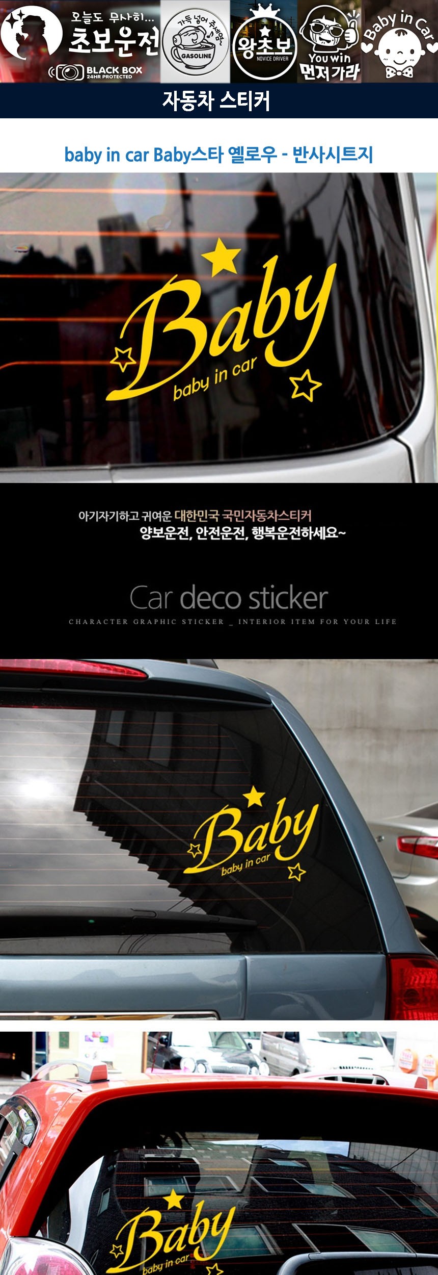 자동차스티커 BABYINCAR BABY스타옐로우 반사시트지 이미지/