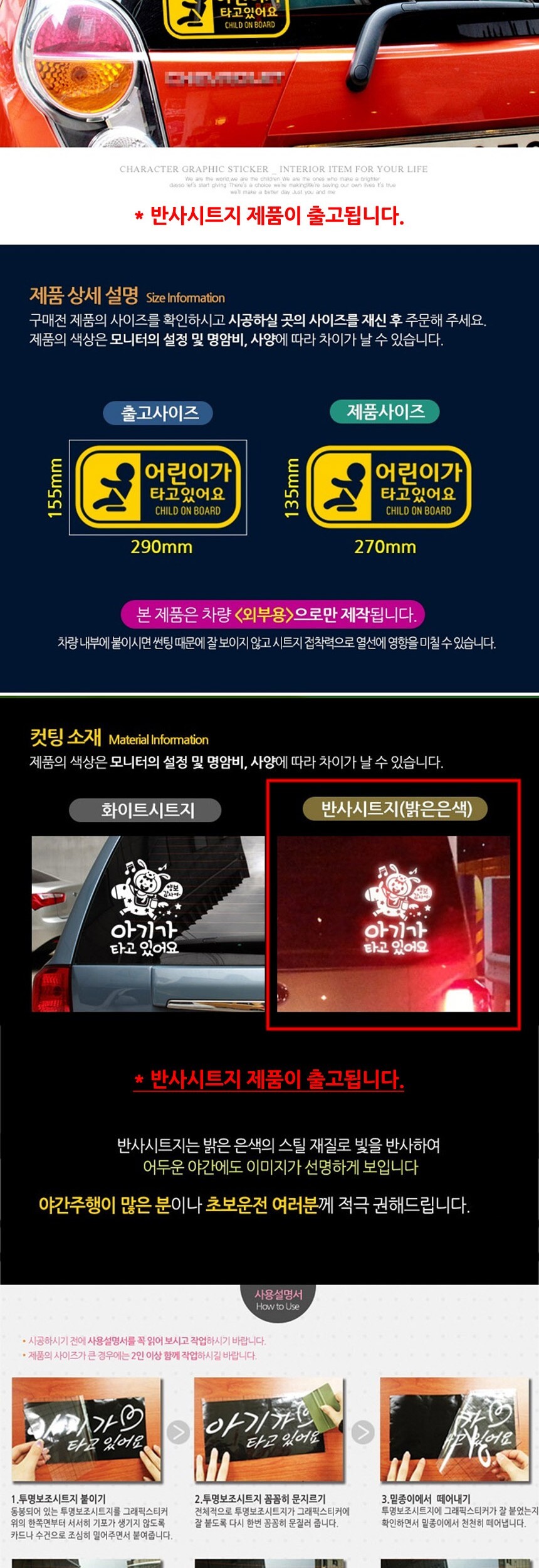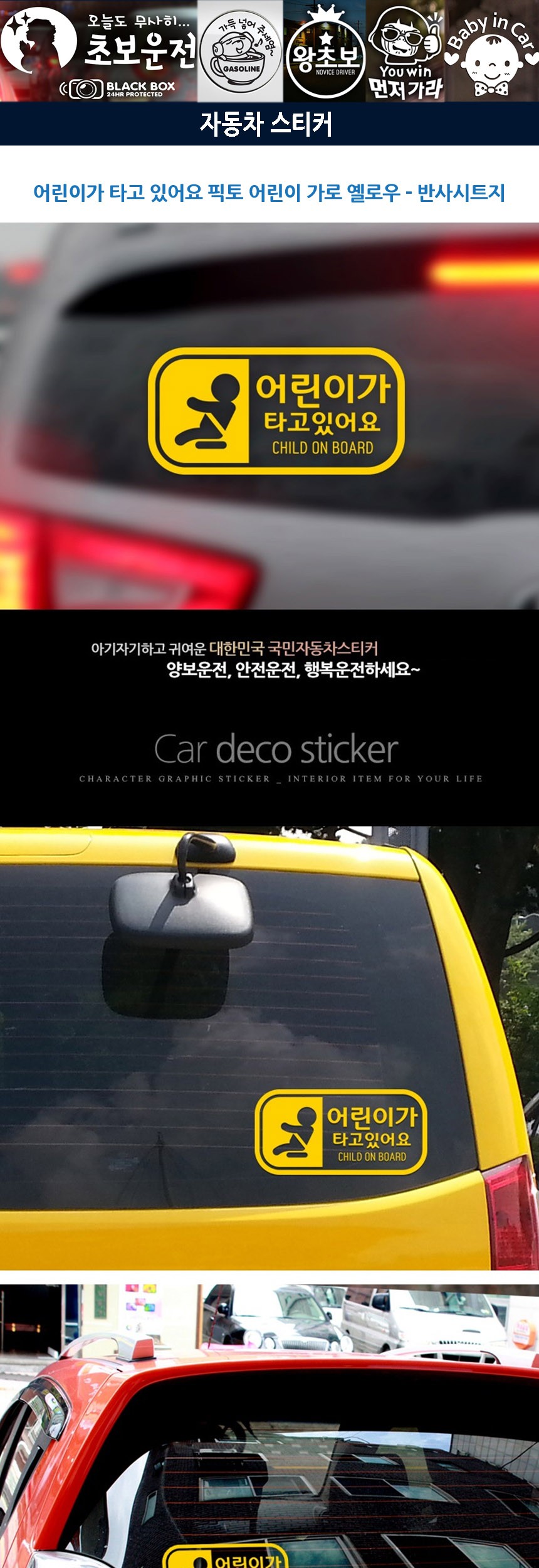 자동차스티커 픽토 어린이 가로옐로우 반사시트지 이미지/