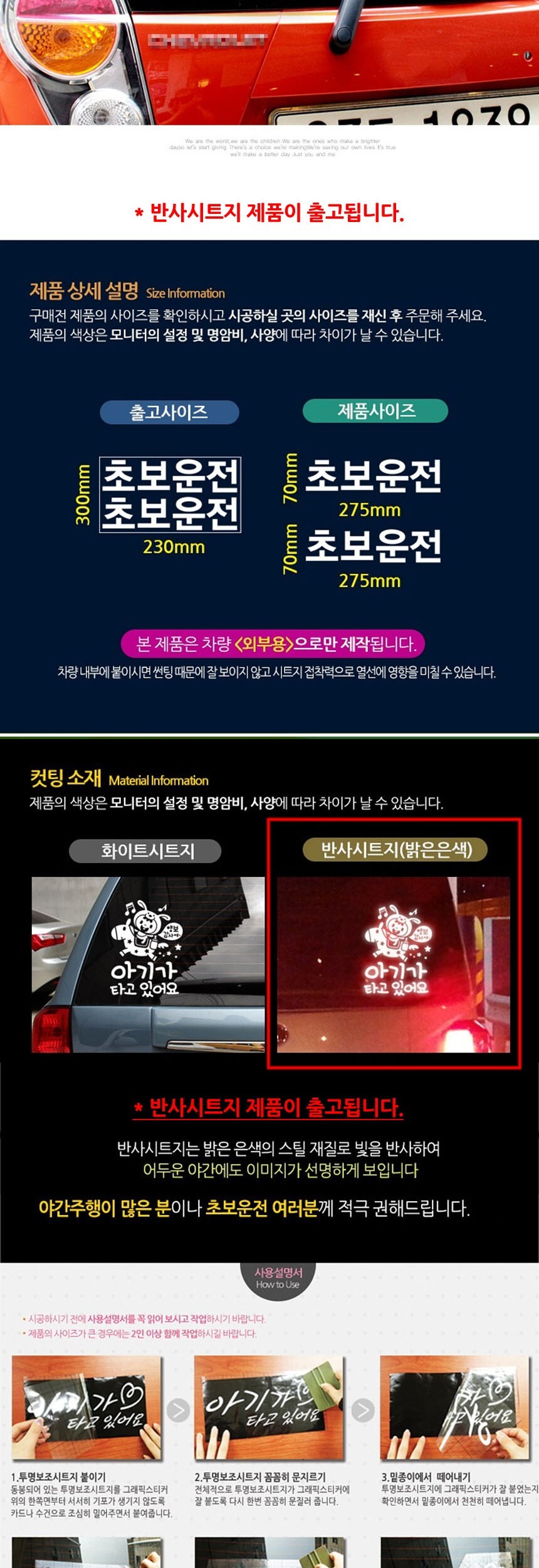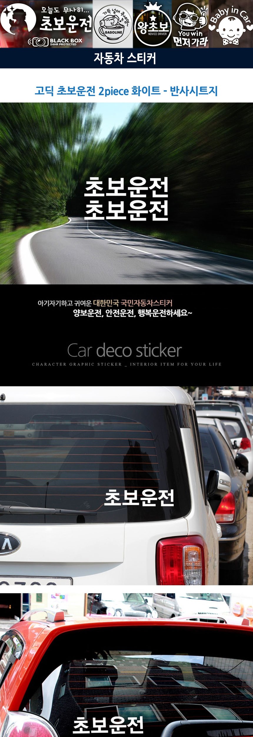 자동차스티커 고딕 초보운전2piece화이트 반사시트지 이미지/