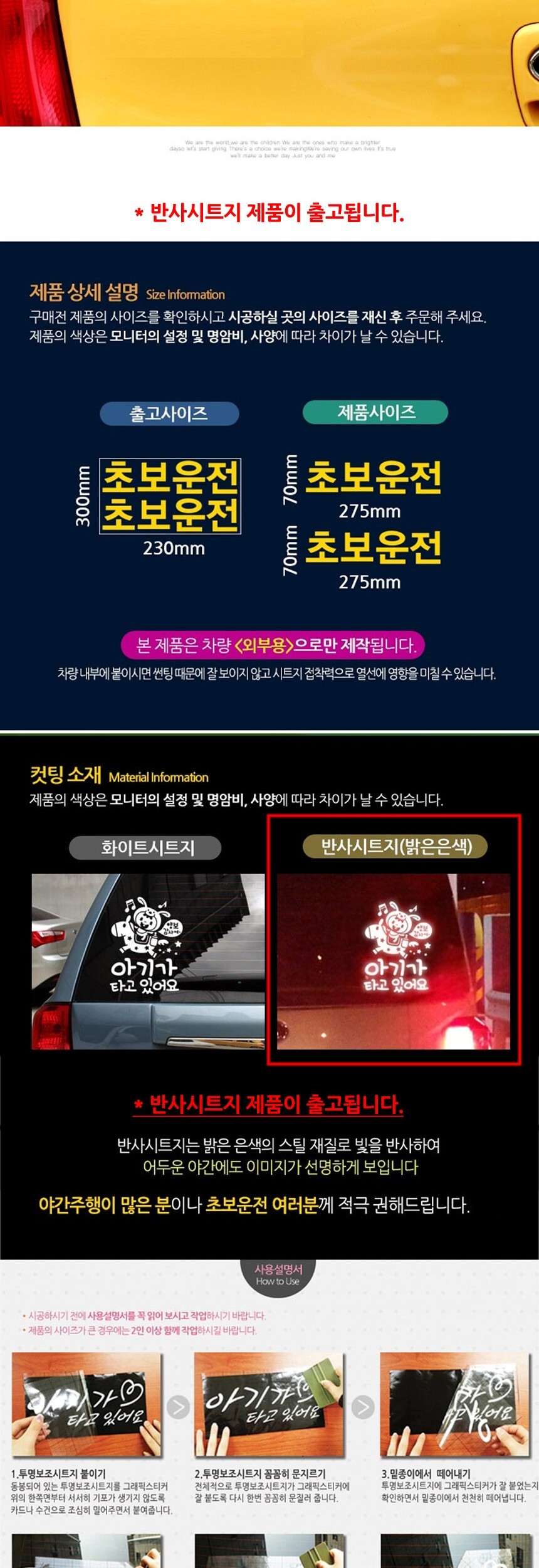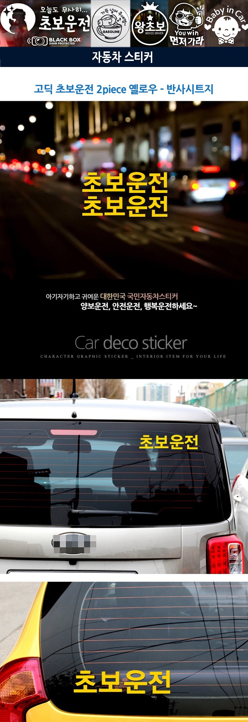 자동차스티커 고딕 초보운전2piece옐로우 반사시트지 이미지/