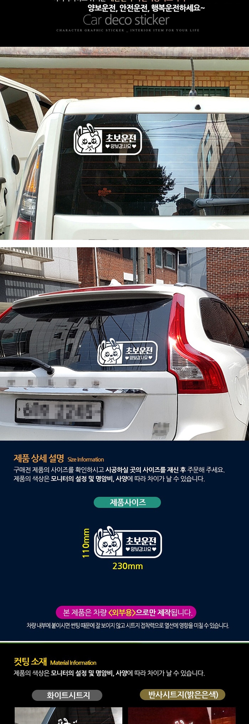 초보운전 애교토끼 초보자동차스티커 반사 차량용스티커