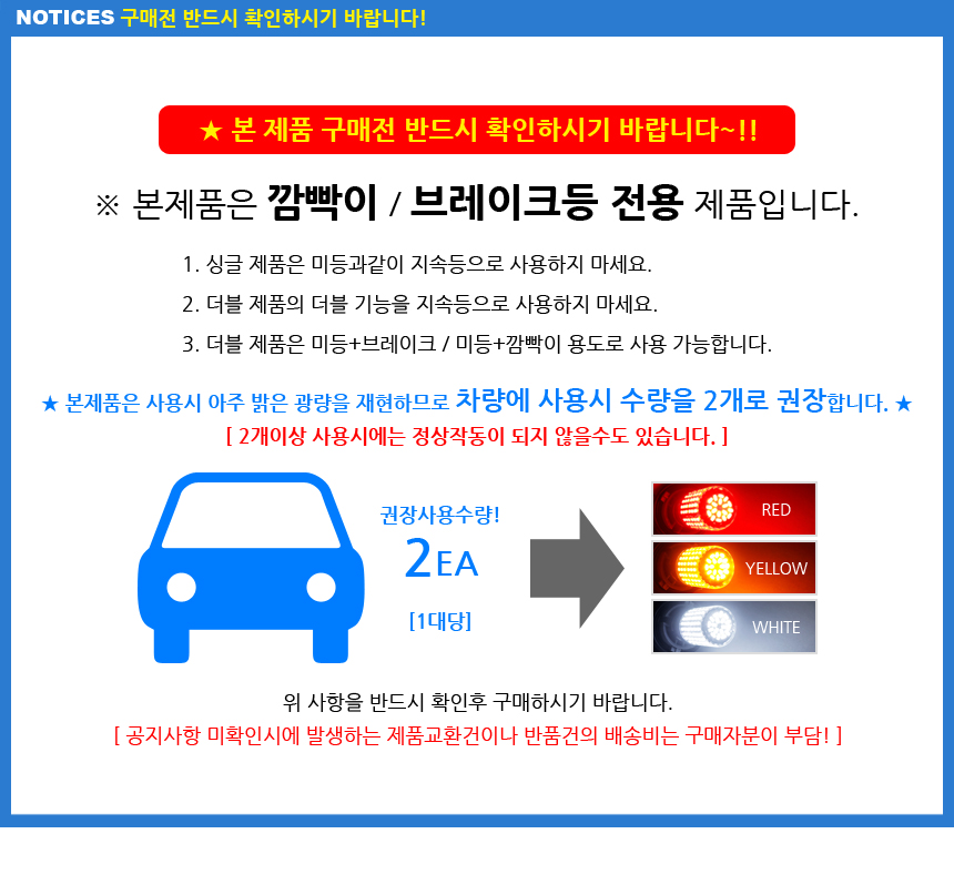 • 초기제품 이상의 경우 동일한 제품으로 1:1 교환원칙, 사용후 제품이상은 A/S를 원칙으로 합니다.