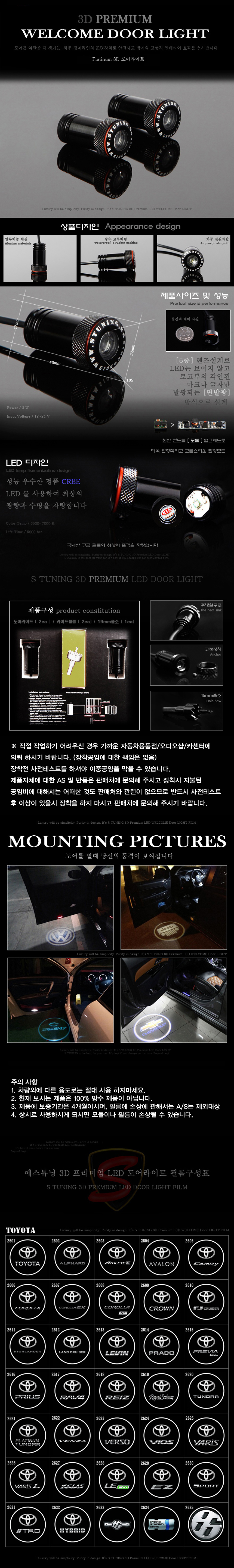 체인지업 도요타 3D LED 도어 라이트빔 등 스팟 램프