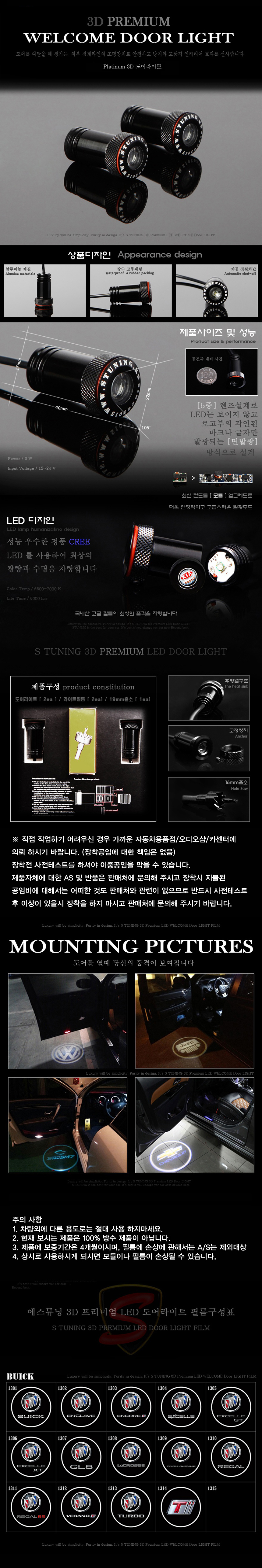 체인지업 뷰익 3D LED 도어 라이트빔 등 스팟램프