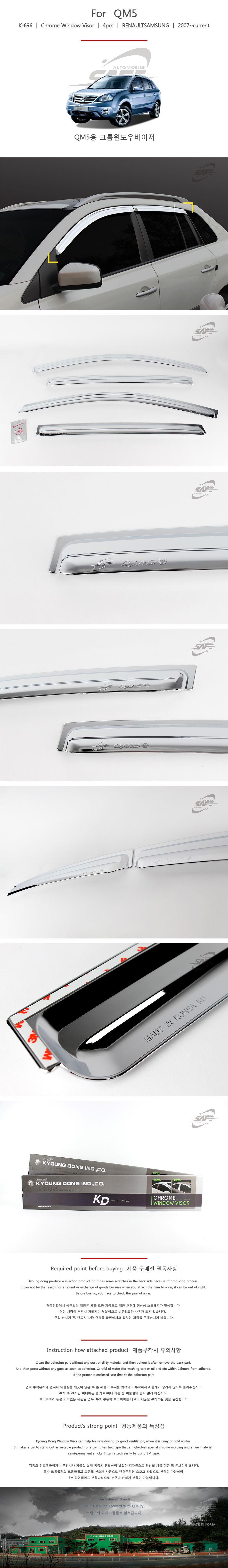 자동차썬바이저 QM5 크롬 몰딩 K-696 이미지/