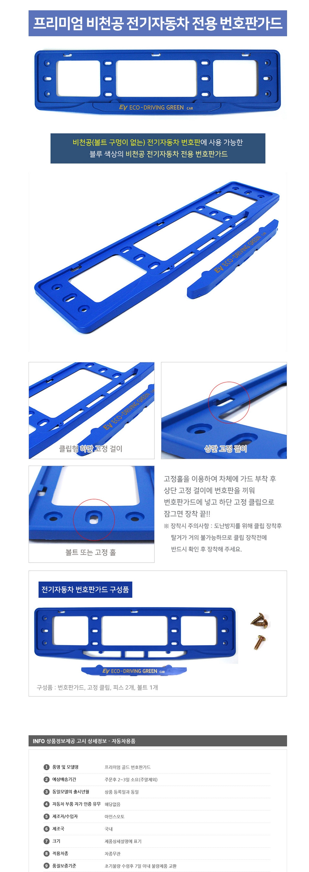 프리미엄 전기자동차 번호판가드 1P 비천공타입 이미지/