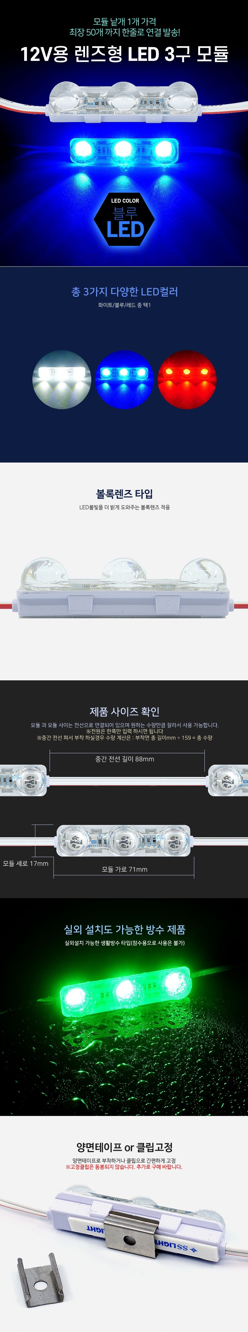 SS LIGHT 자동차 LED바 블루 12V 튜닝 무드등 조명 3구 모듈