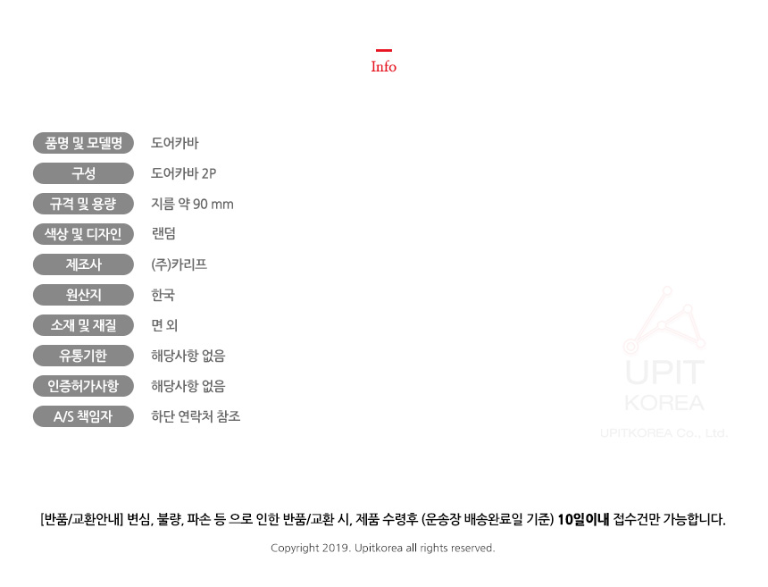 • 반품/환불조건: 도착후 1주일 이내 사용하지 않은 상태에서 가능합니다,초기제품 이상의 경우 동일한 제품으로 1:1 교환원칙, 사용후 제품이상은 A/S를 원칙으로 합니다,