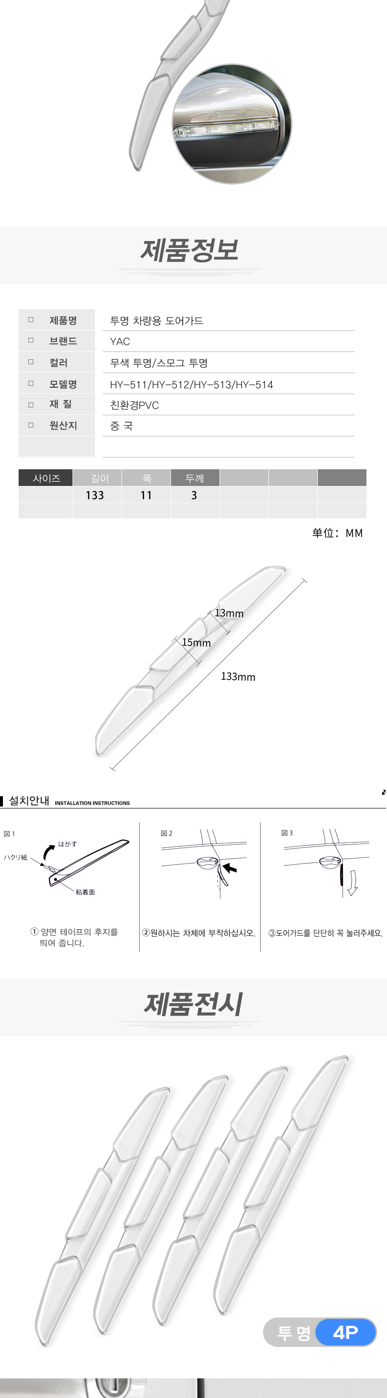 YAC-차량용 투명 도어가드 이미지/