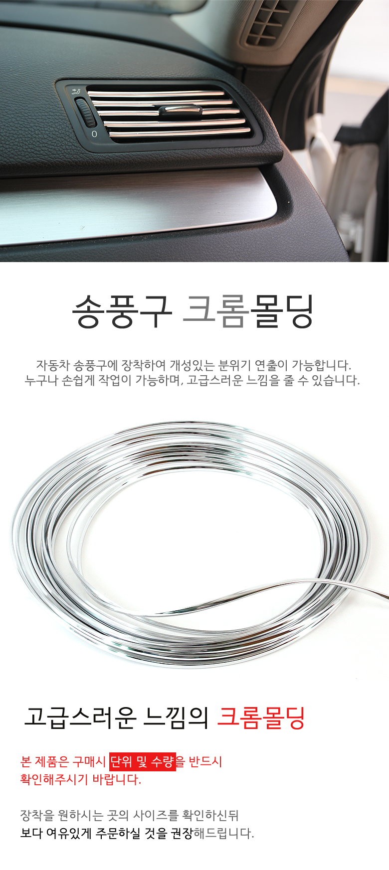 • 품명 및 모델명차량용 송풍구 크롬몰딩 1M 기준판매